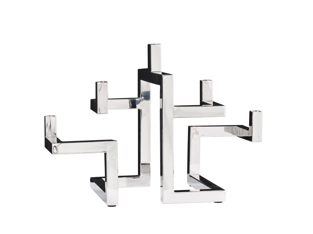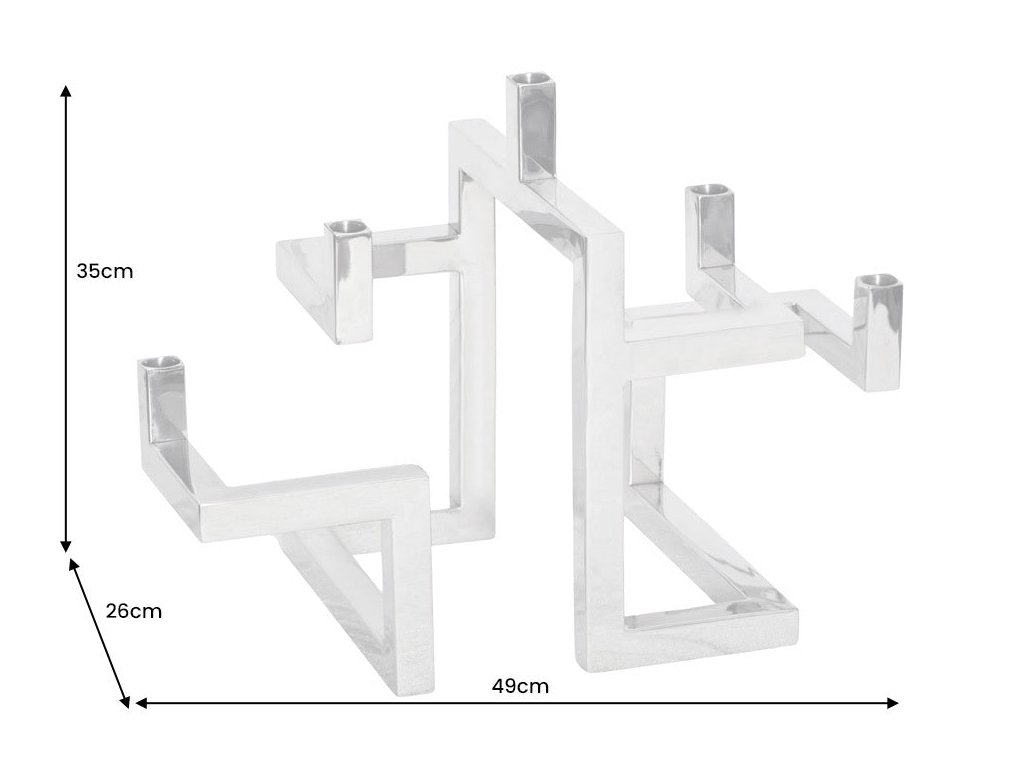 Svícen ABSTRACT 50cm 5 plamenů stříbrný