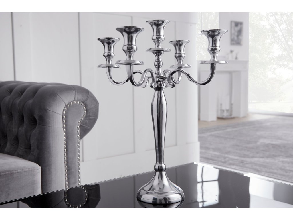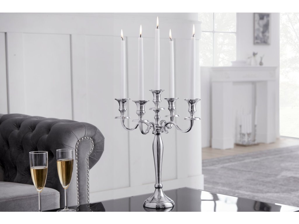 Svícen MODERN BAROCK 40cm 5ramenný stříbrný