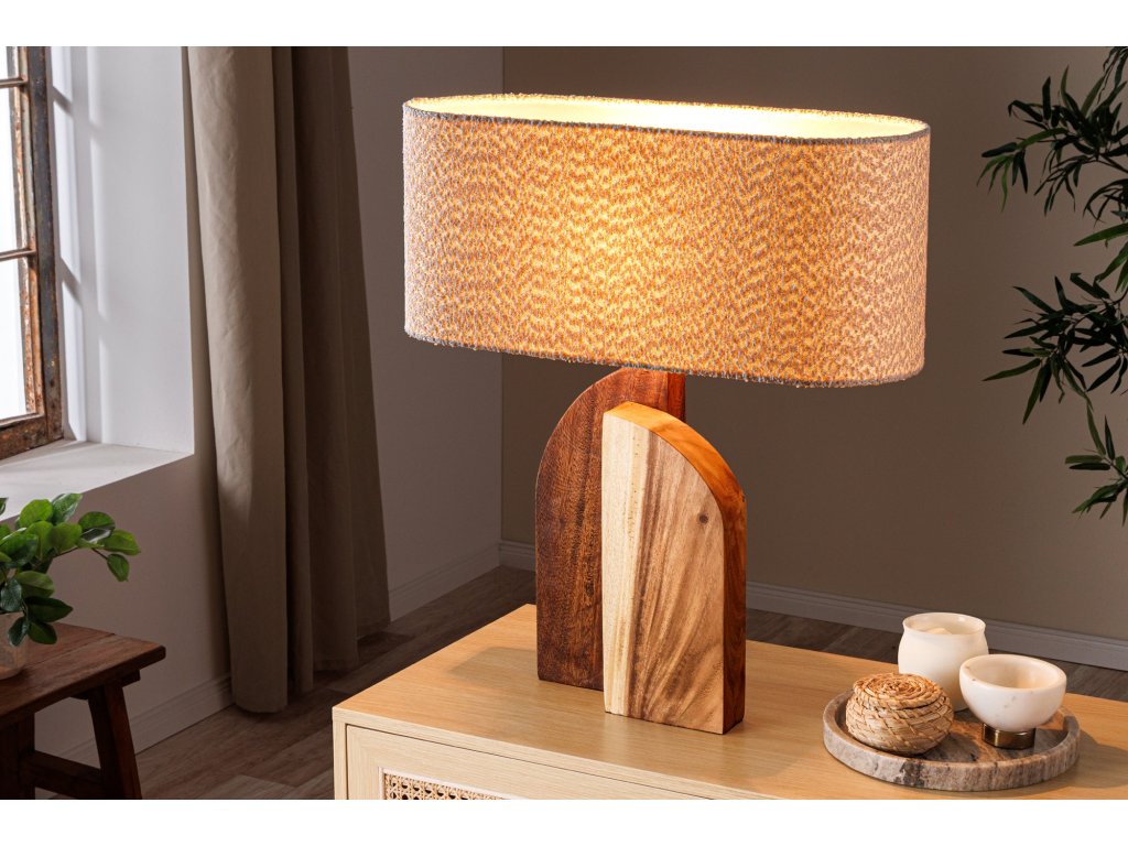 Table lamp LOVERS 60cm natural raintree wood lampshade bouclé white