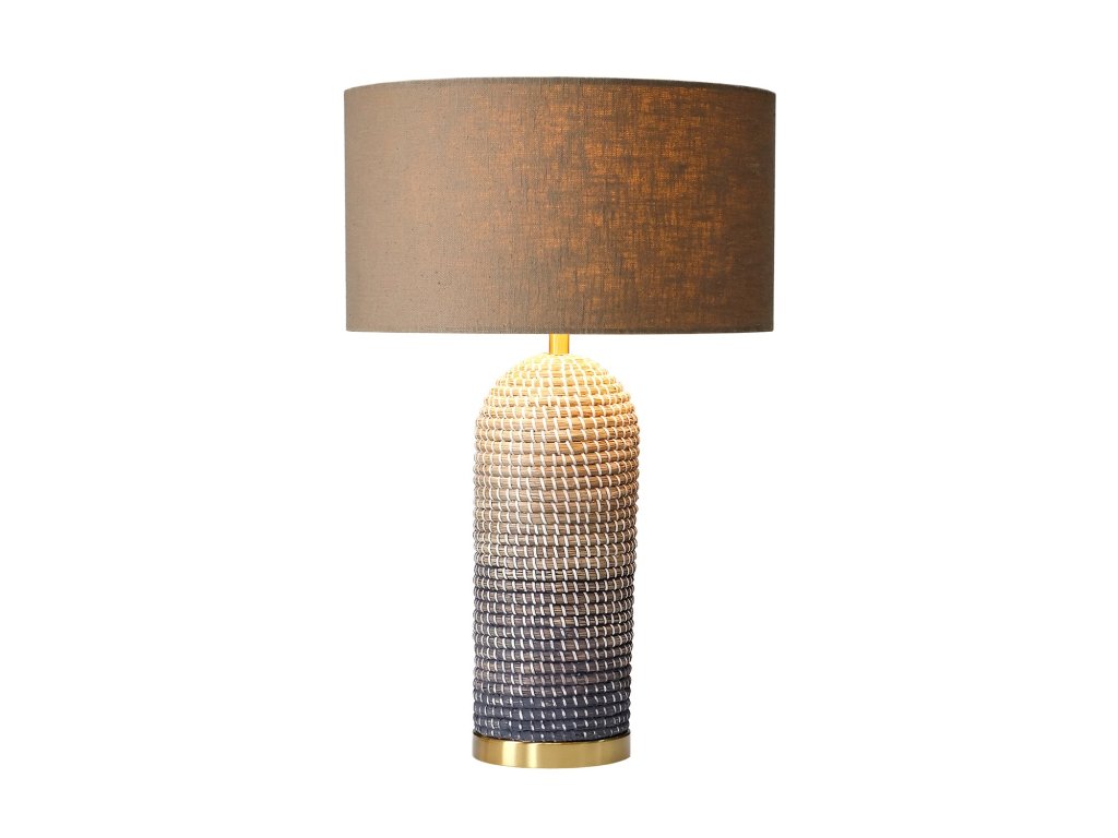 Stolní lampa Zea 60 cm, gradientní barva mořské trávy, přírodní hnědo-zlatá, se stínidlem z hrubého hnědého lnu