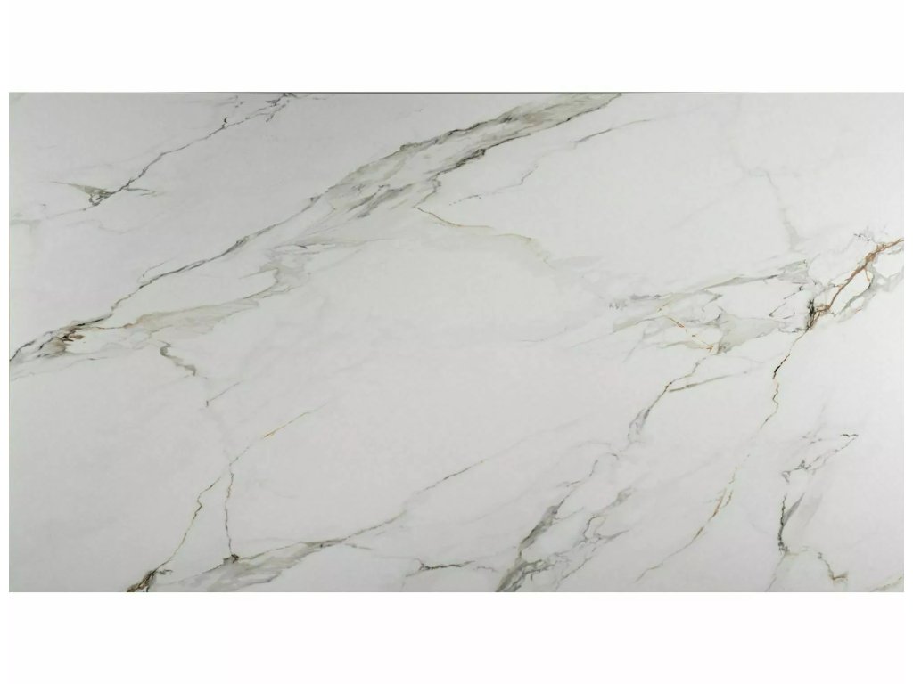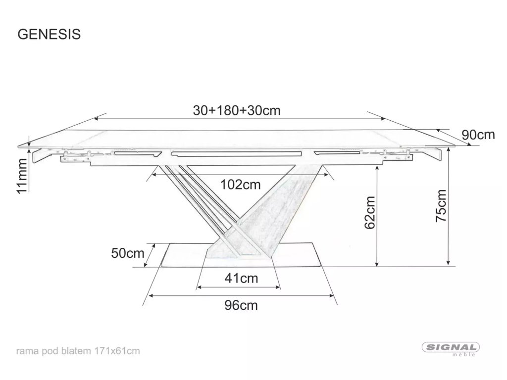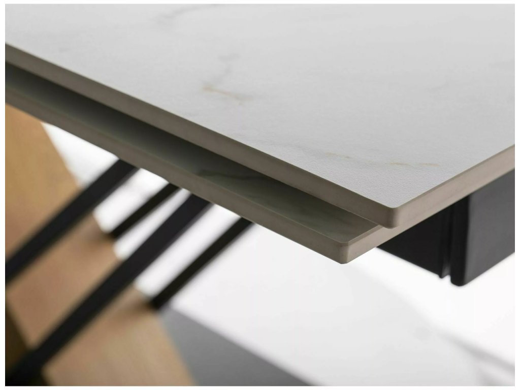 Rozkládací stůl, deska: keramika, rám: kov + MDF + dýha, barva: matná bílá / dub.