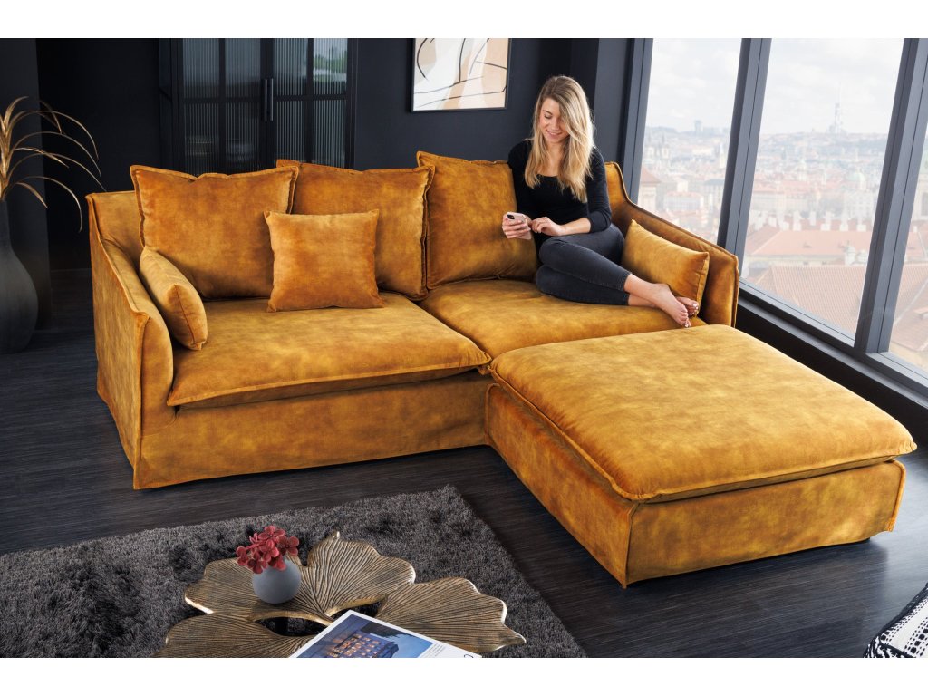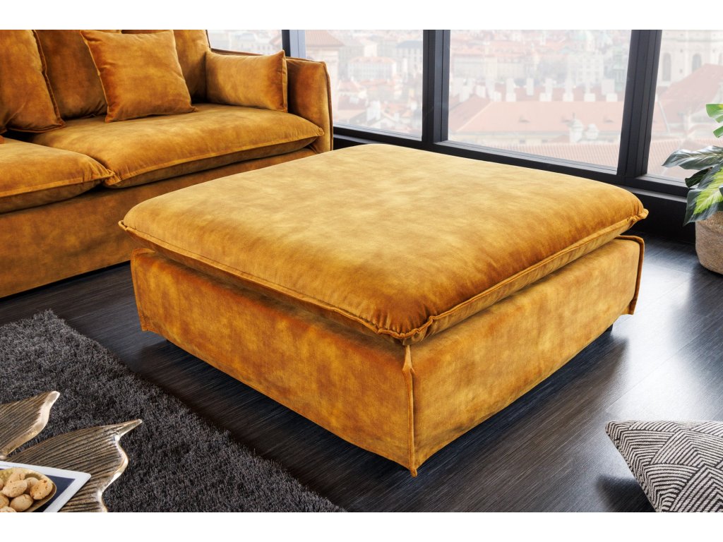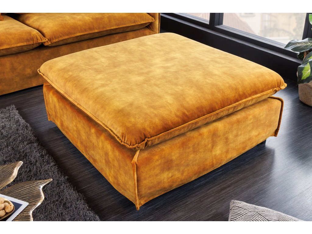 Taburet HEAVEN 100cm snímatelný potah texturovaný sametově hořčicově žlutý