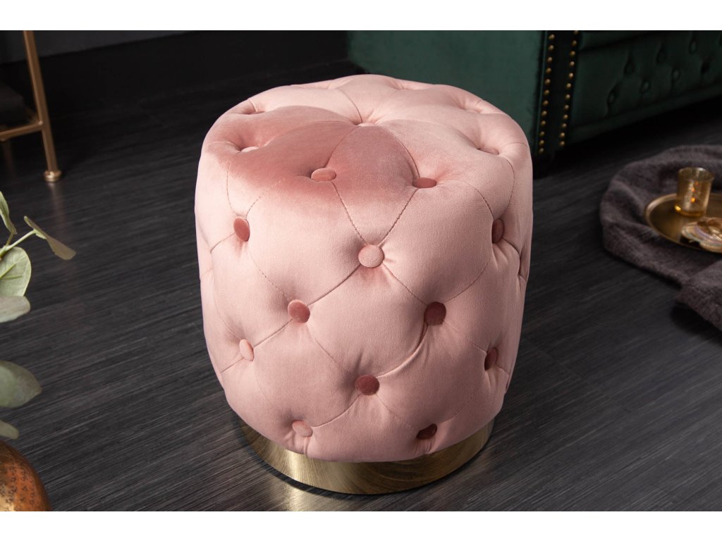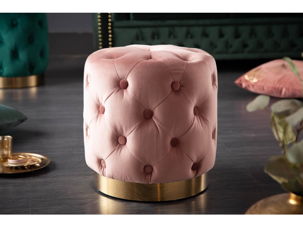 Taburet MODERN BAROCK 35cm sametově tmavě růžové zlato