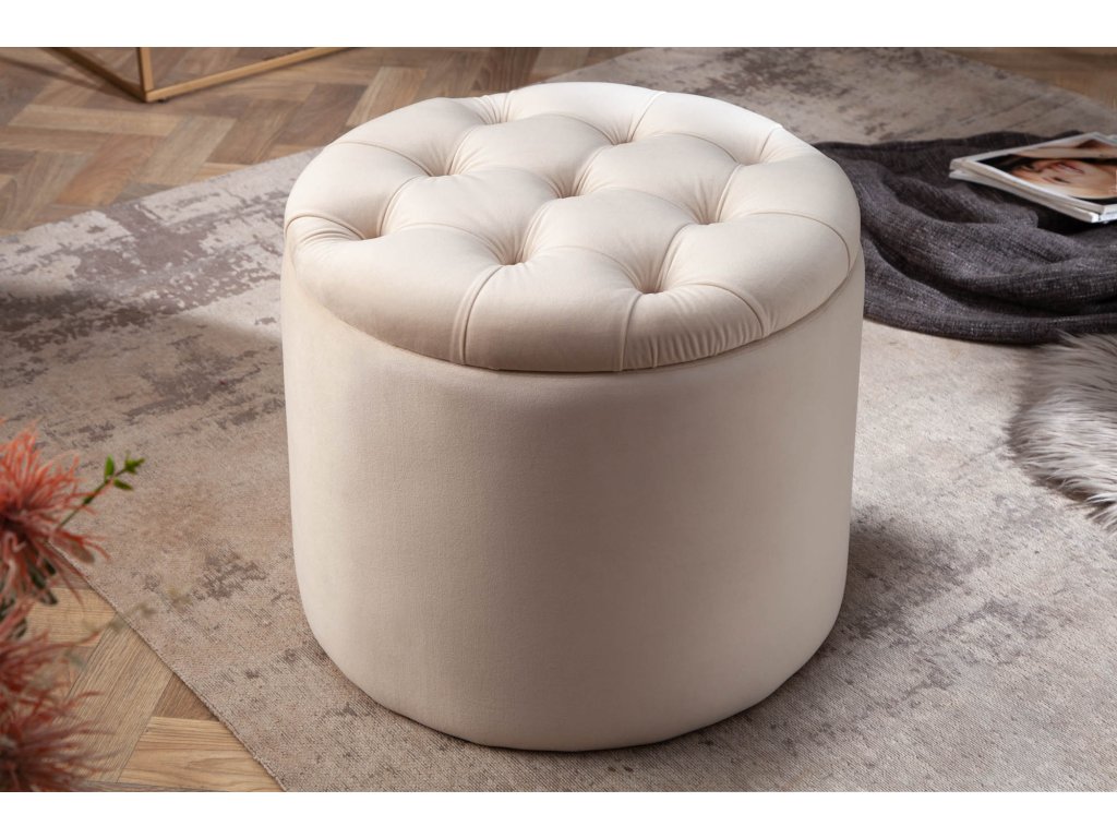 Taburetka MODERNÍ BAROCK SKLAD 50cm sametově béžová