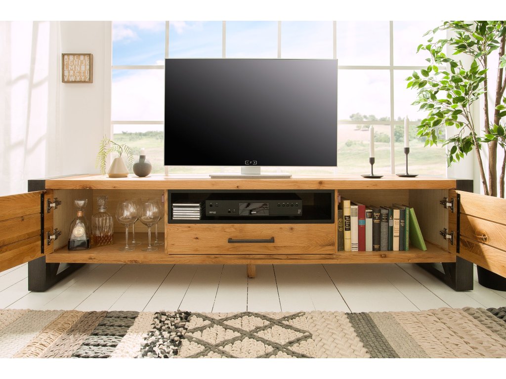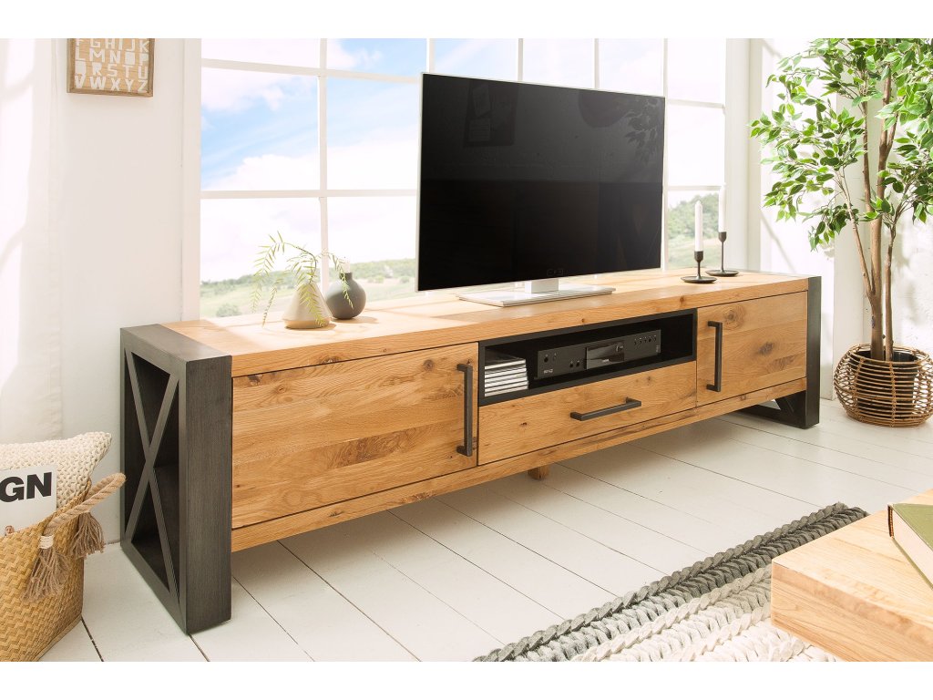 Televizní stolek THOR 200cm dřevo divoký dub industriální styl
