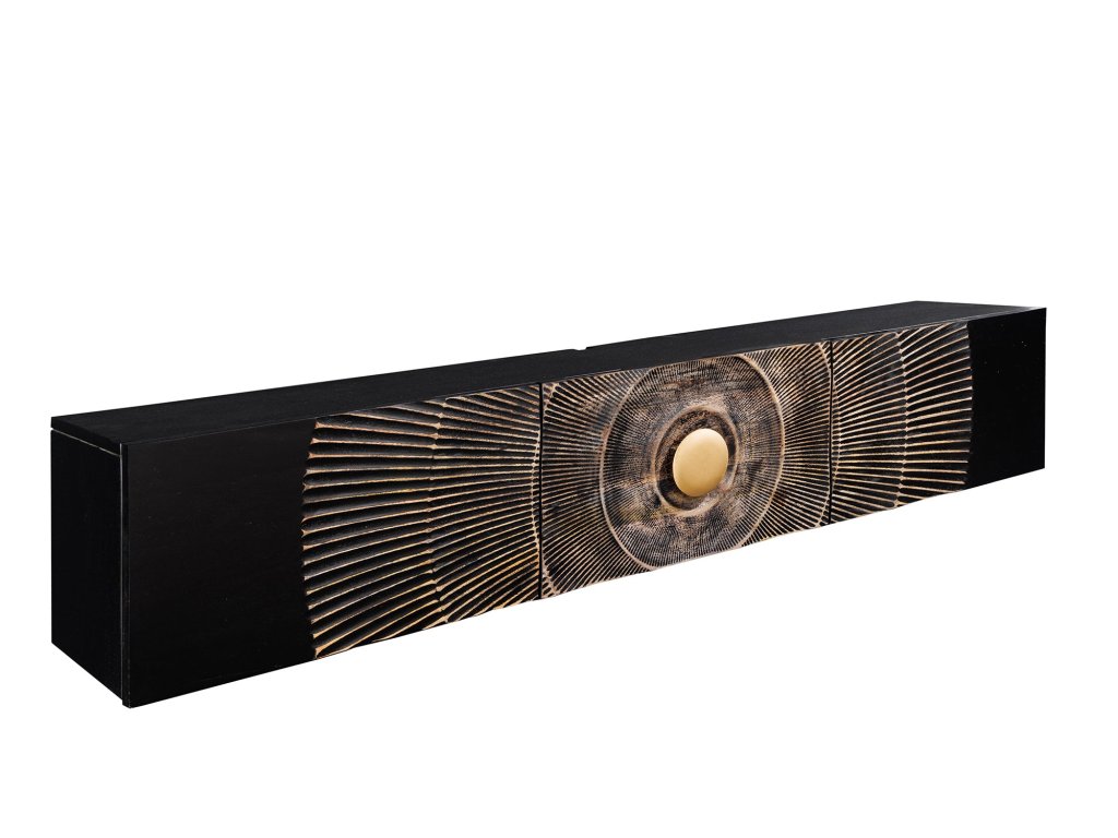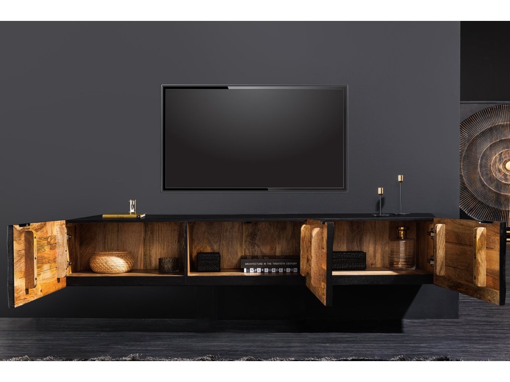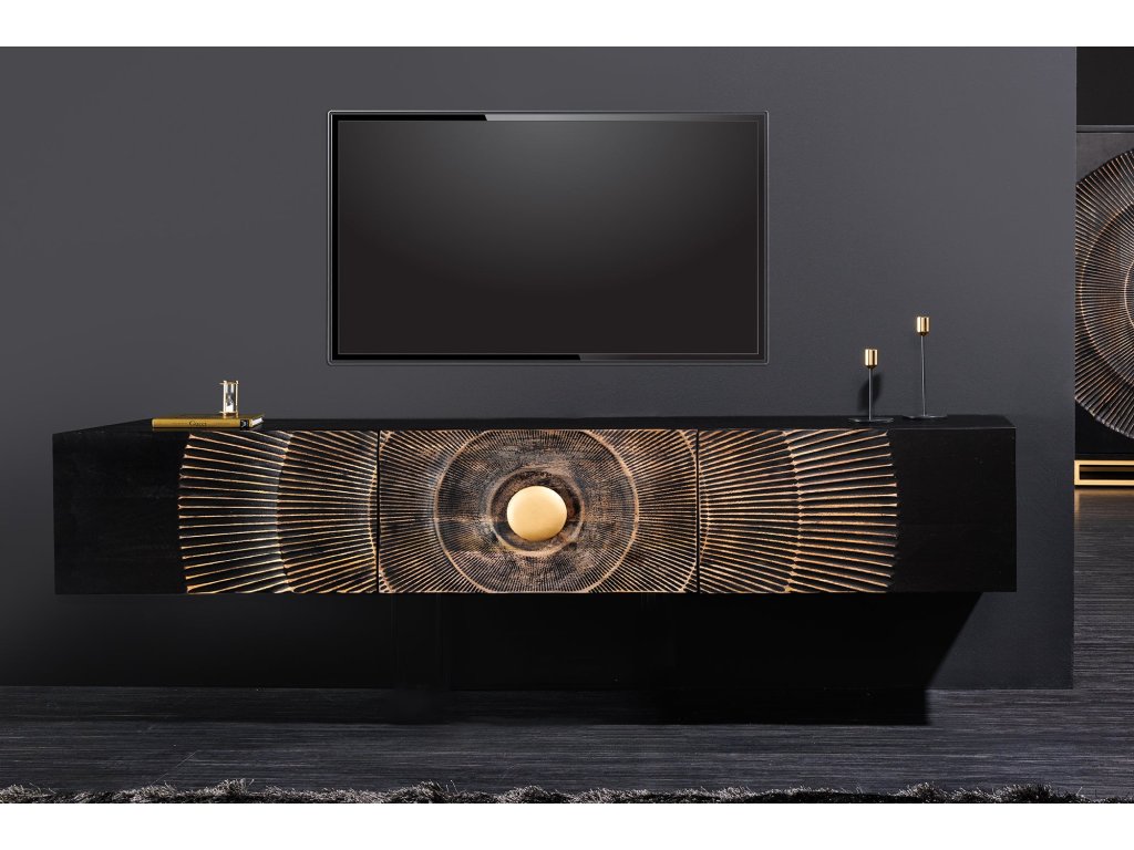 TV-tabule GOLDEN SUNSET 160cm 3D závěsné mangové dřevo černé