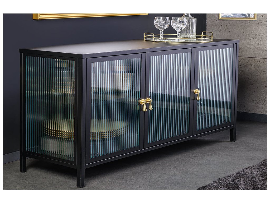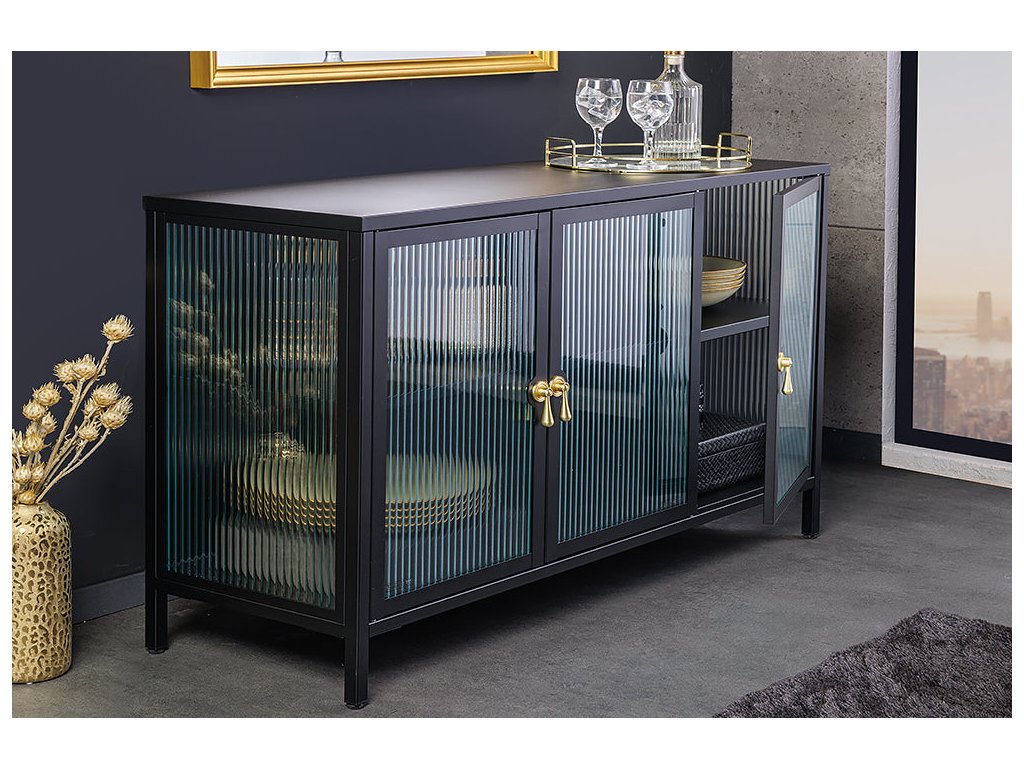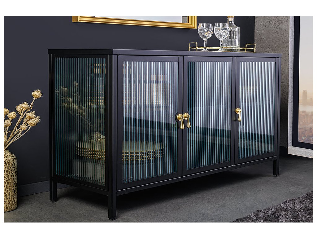 Vitrína AMSTERDAM 105cm rýhované sklo černé
