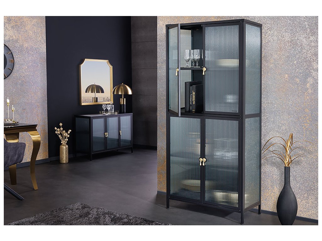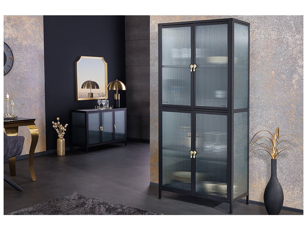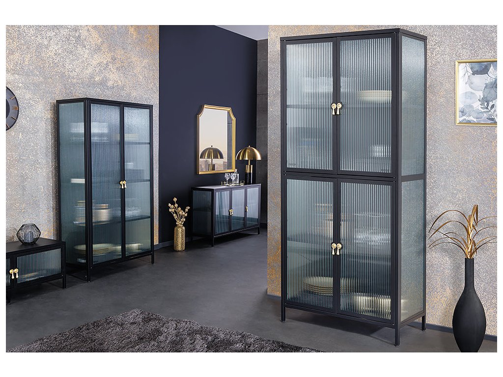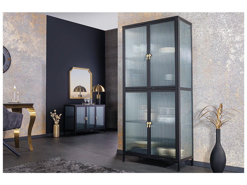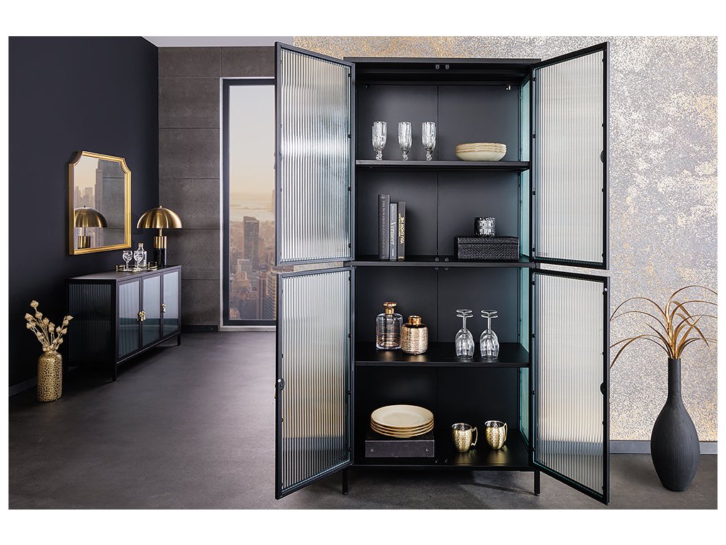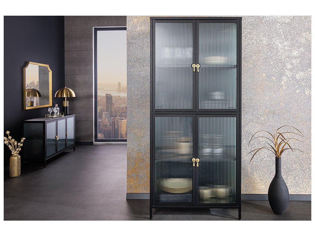 Vitrína AMSTERDAM 180cm rýhované sklo černé