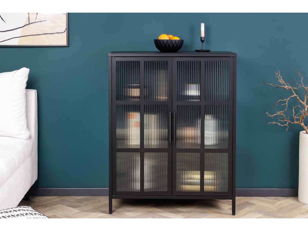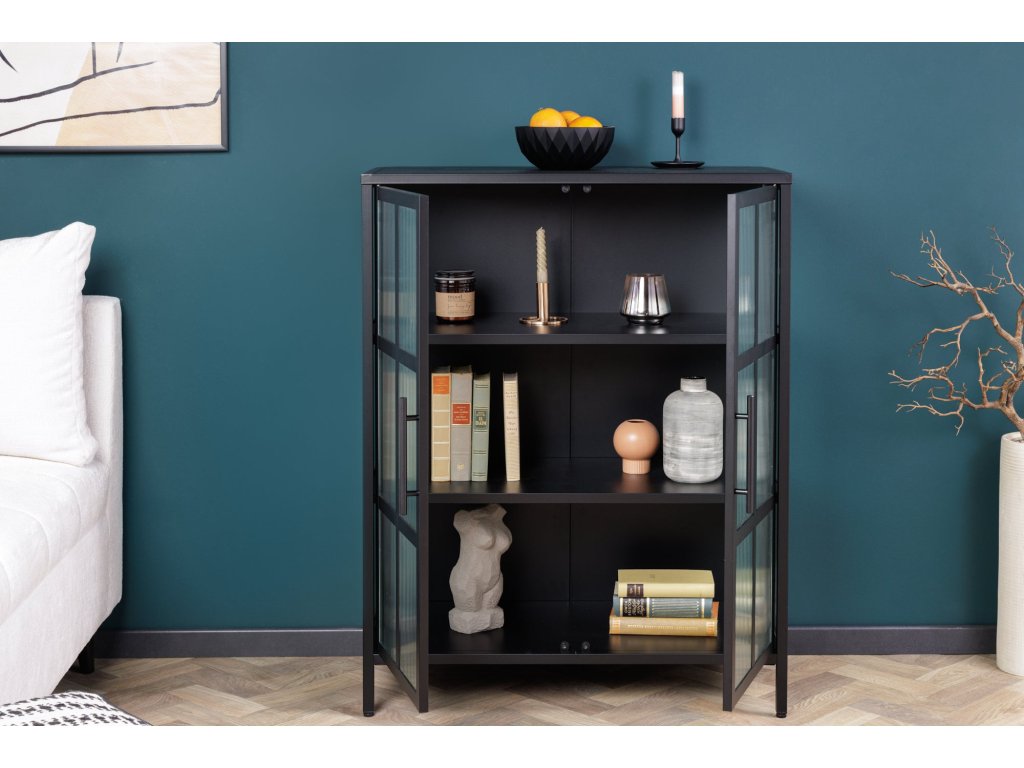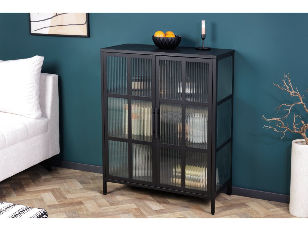 Vitrína DURA STEEL 102cm žebrované sklo černé
