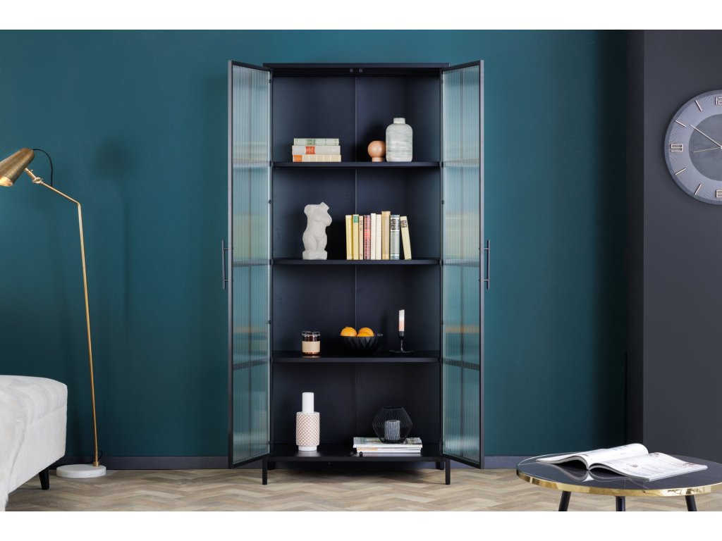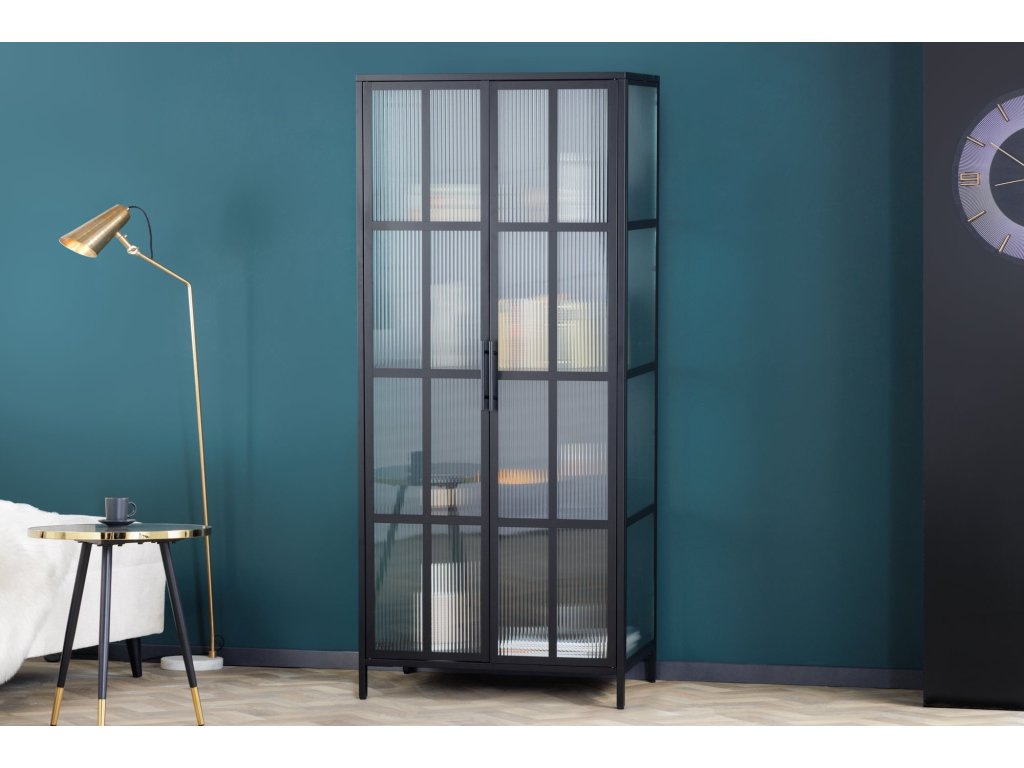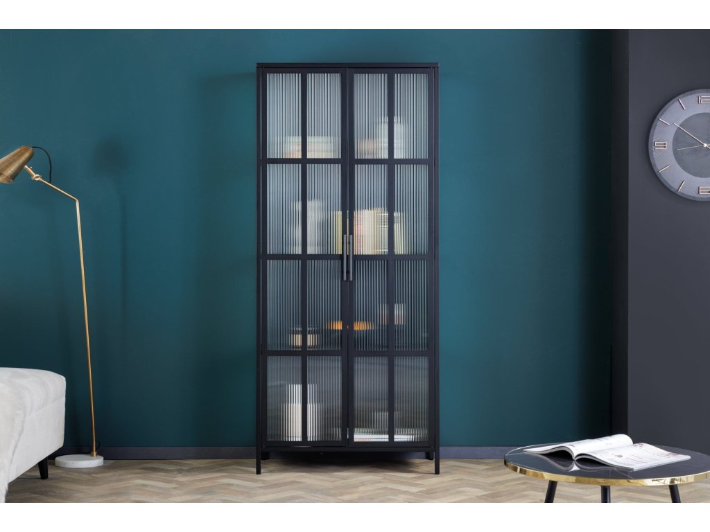 Vitrína DURA STEEL 180cm žebrované sklo černé