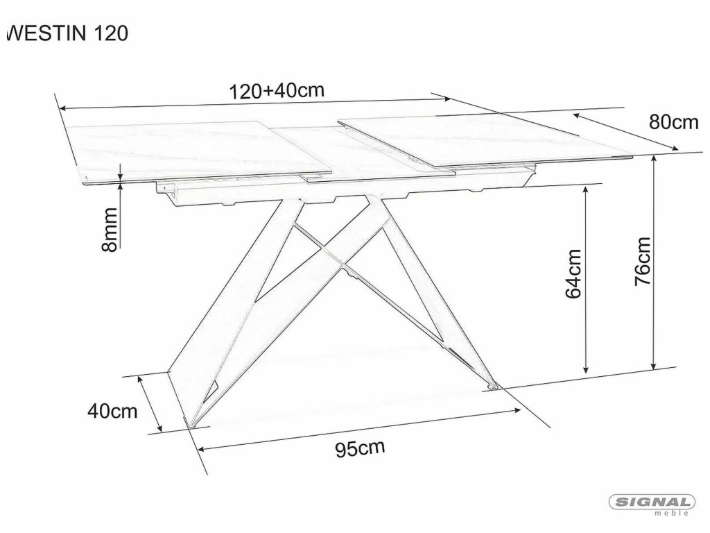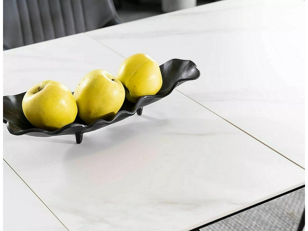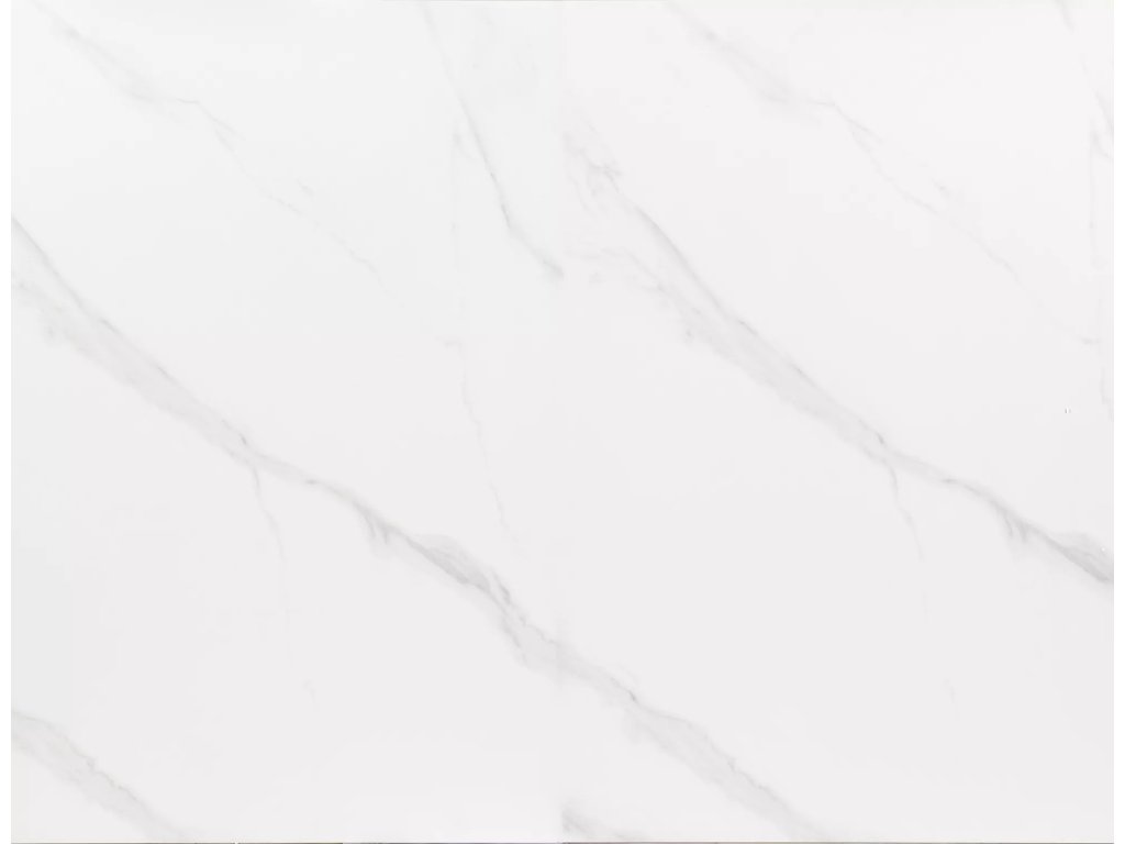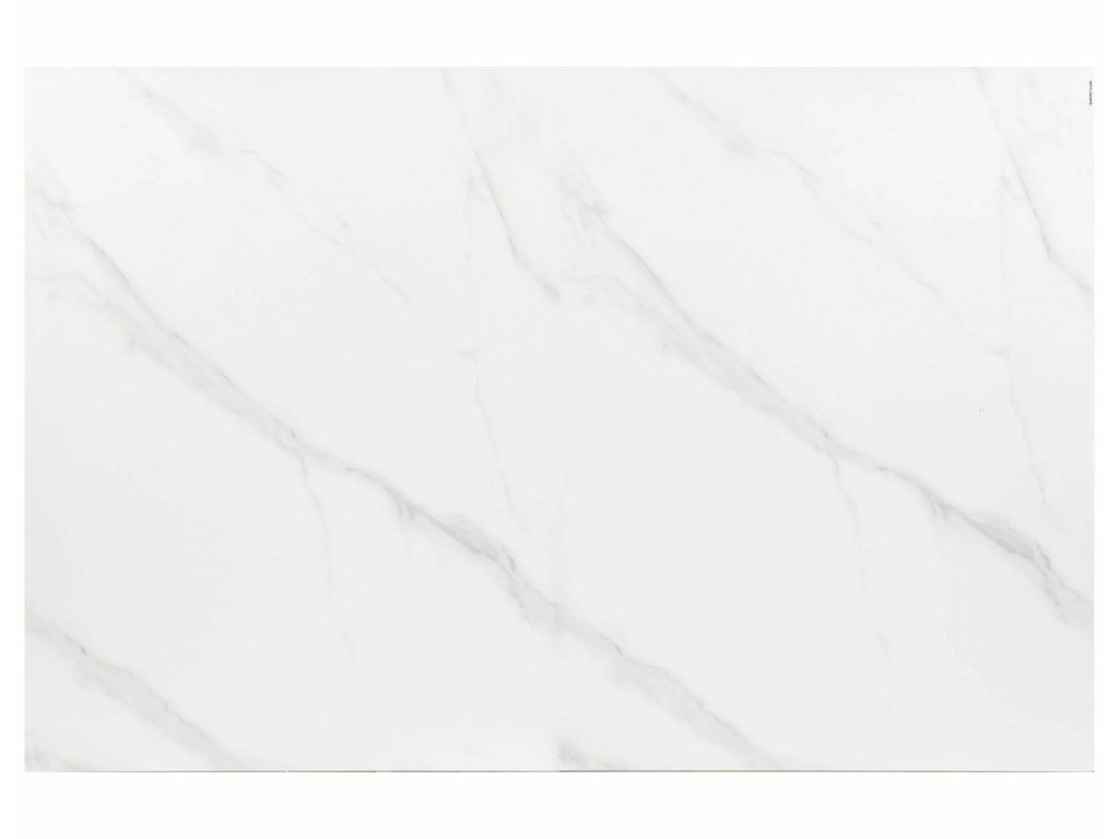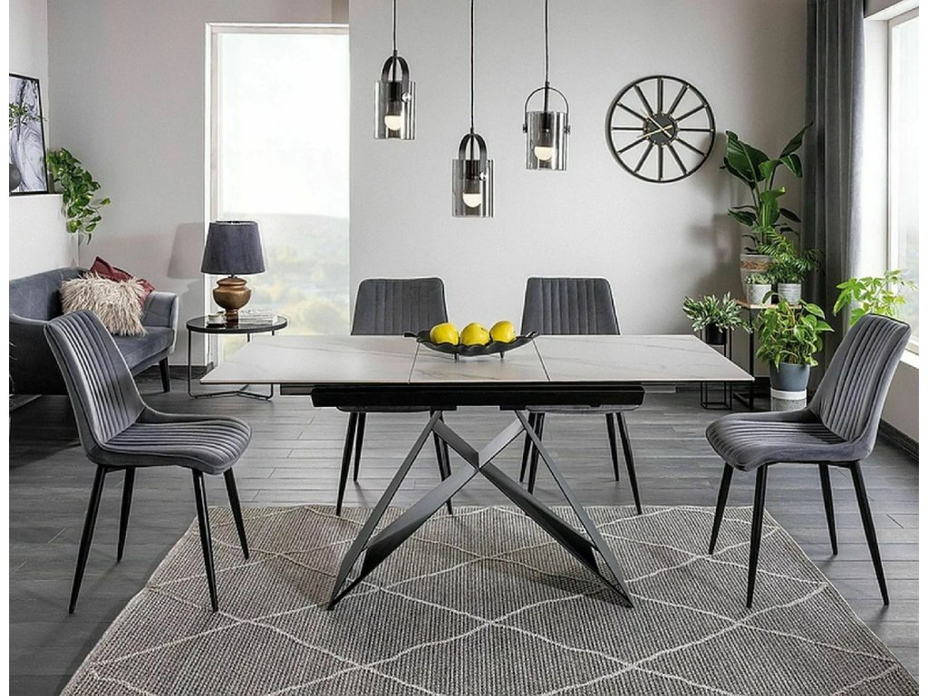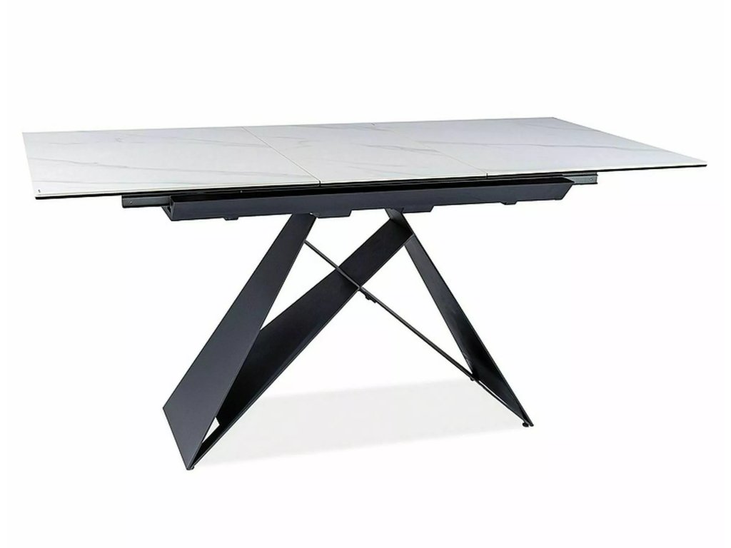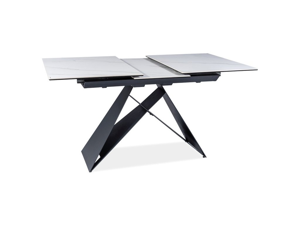 Rozkládací stůl, deska: tvrzené sklo + keramika JASPER WHITE, mramorový efekt, rám: kov, barva: matná bílá / matná černá.