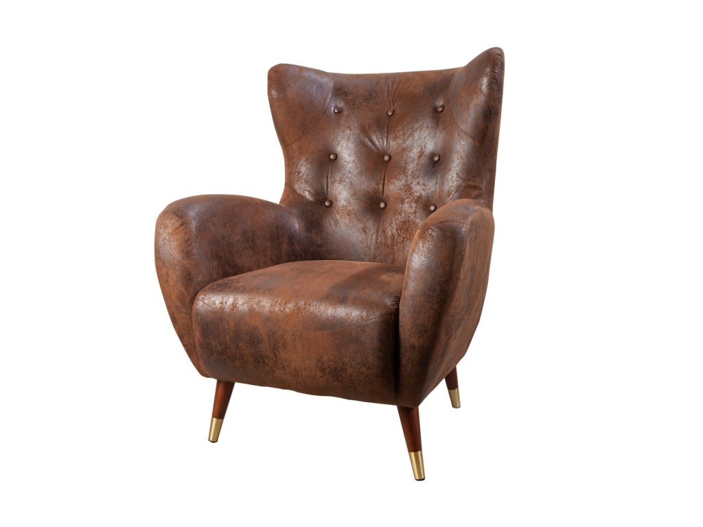 Křeslo s ušákem DON se zlatými krytkami z mikrovlákna, antickohnědá