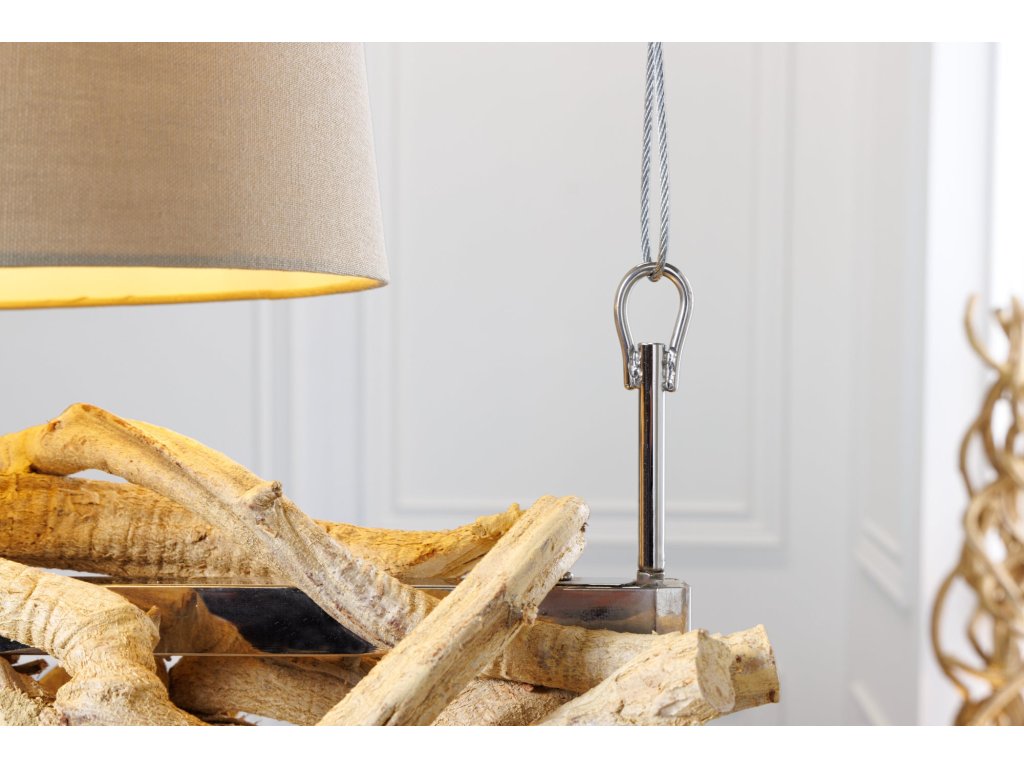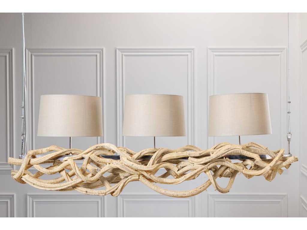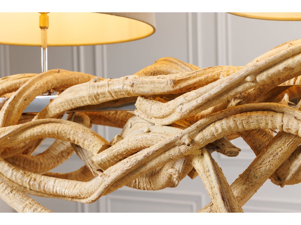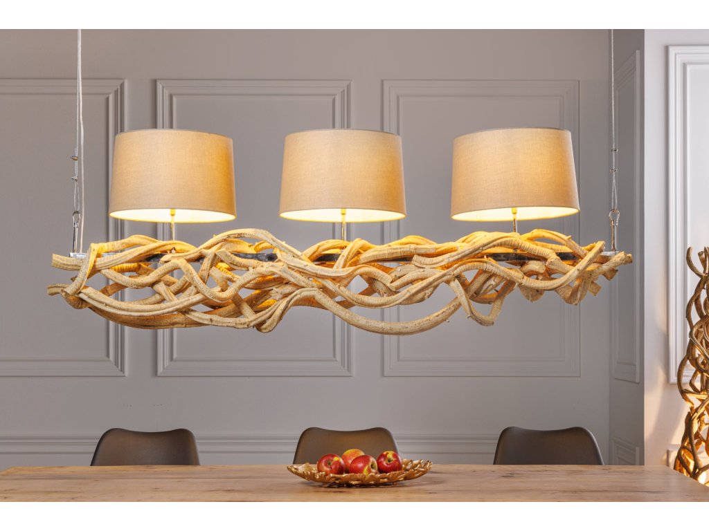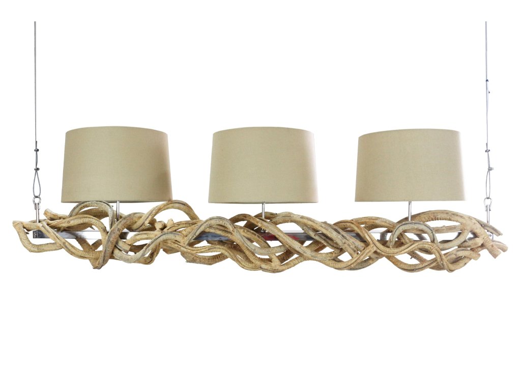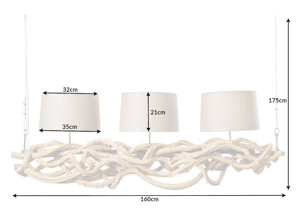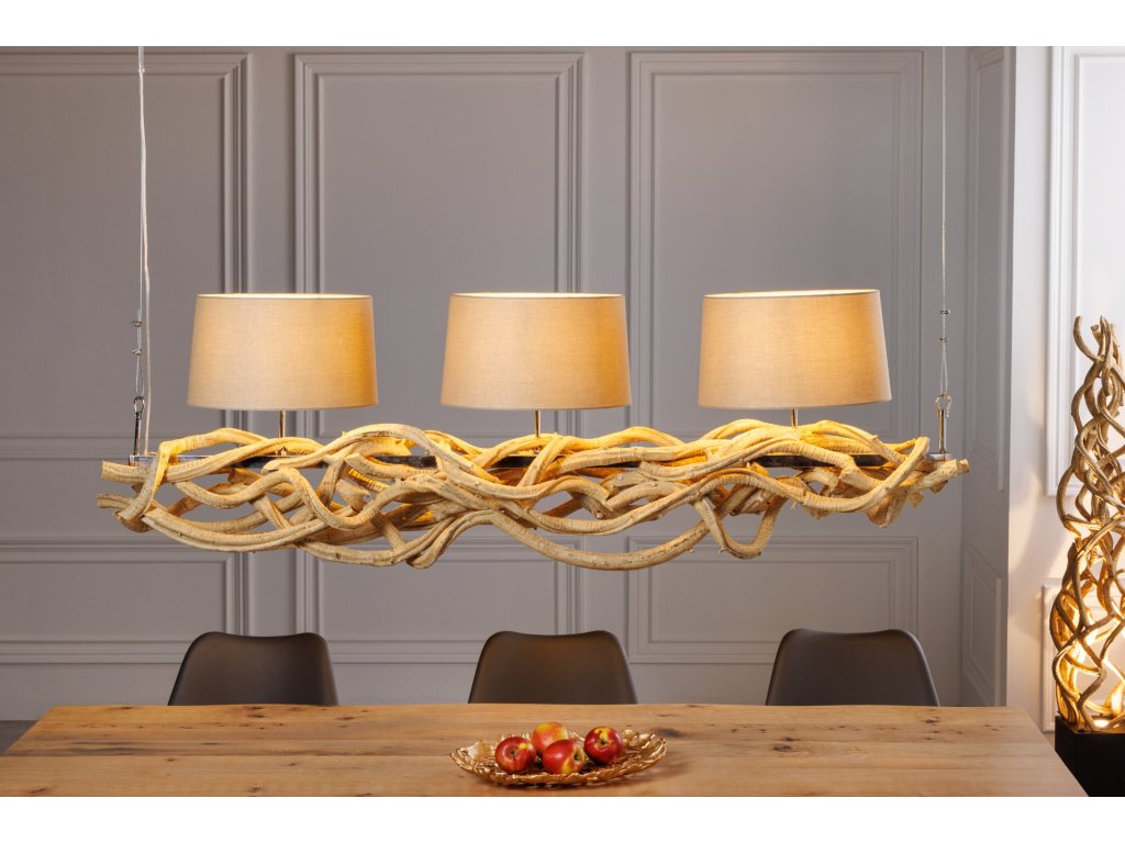 Závěsná lampa VIGINE 165cm z recyklovaného dřeva a lněných stínidel