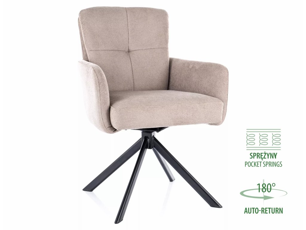 Židle, čalounění: látka Vardo, rám: kov, barva: 34 béžová / matná černá. Funkce automatického návratu - sedák otočný o 180 stupňů, s funkcí návratu. Taštičkové pružiny v sedáku.
