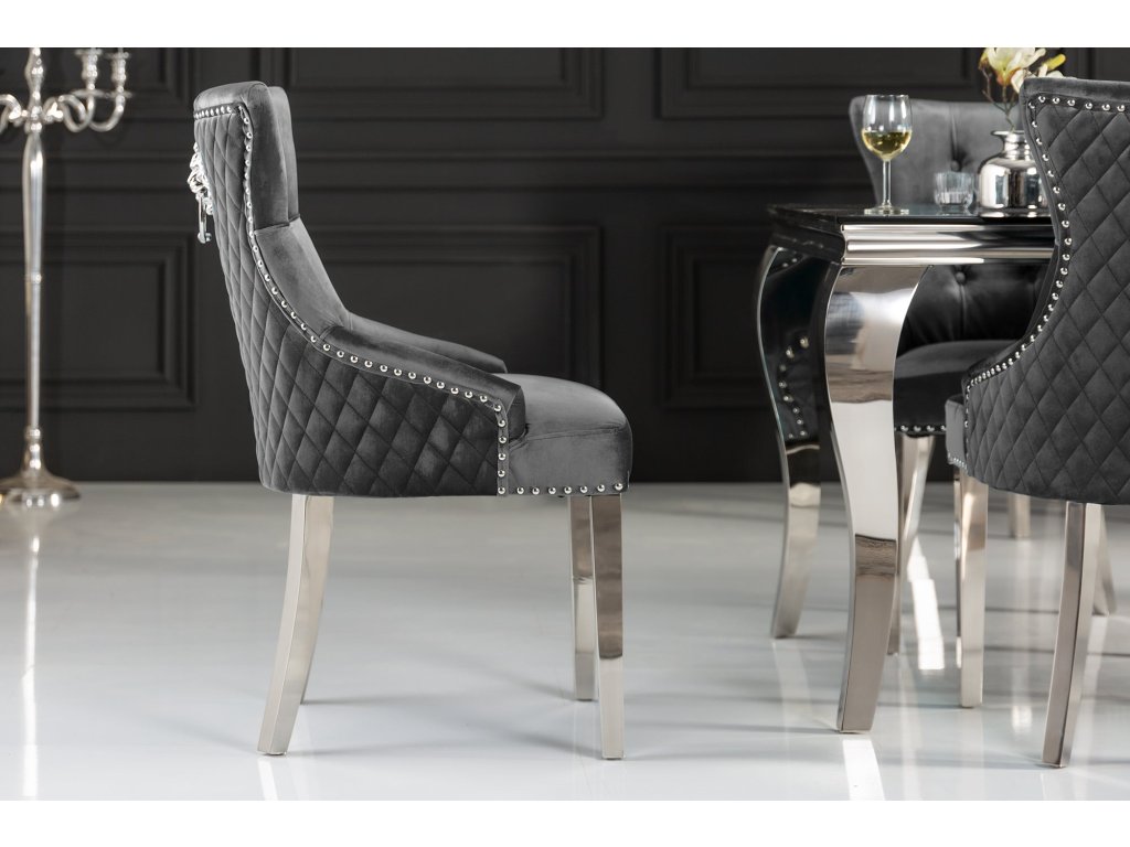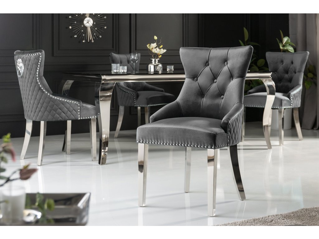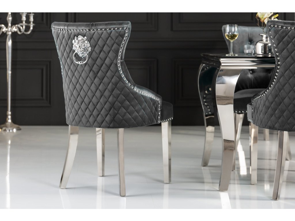 Židle CASTLE DELUXE s rukojetí lví hlavy sametově šedá