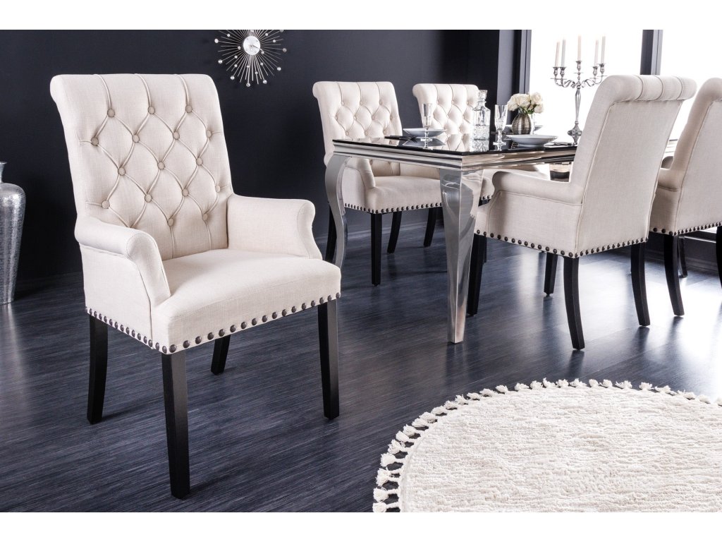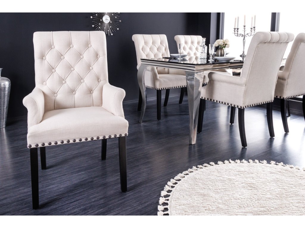 Židle CASTLE s područkami černé nohy texturovaná látka béžová
