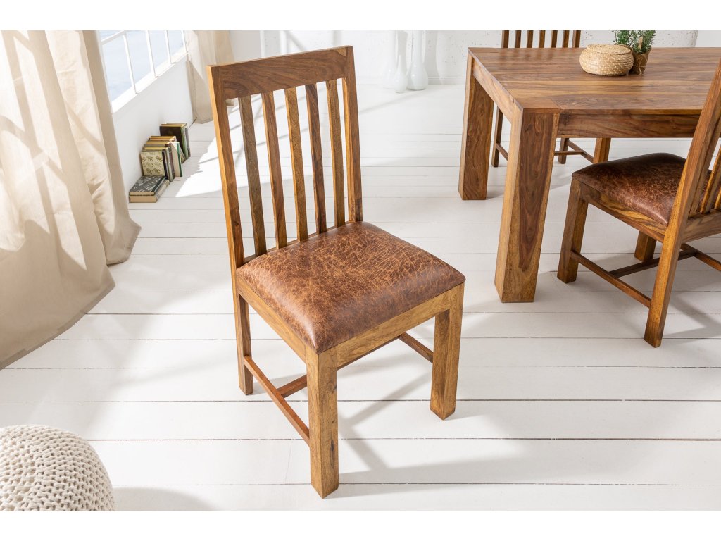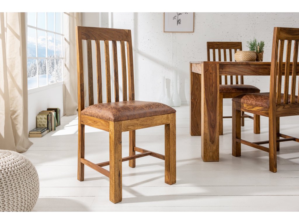 Židle MAKASSAR ze sheeshamového dřeva a mikrovlákna