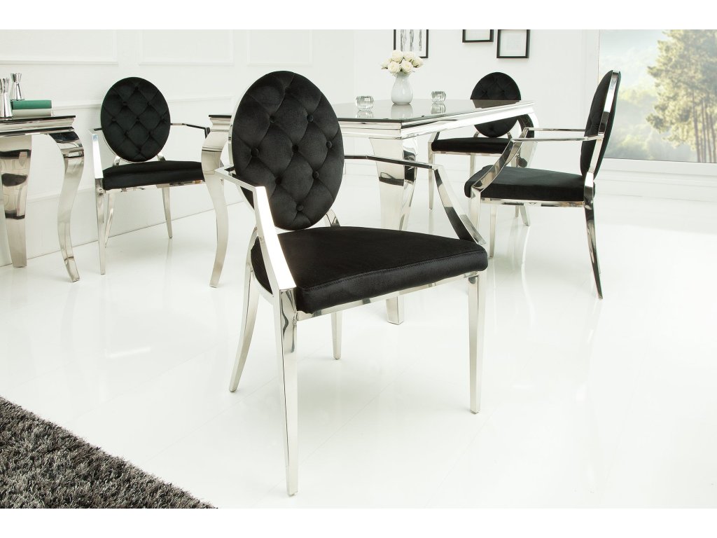 Židle MODERN BAROCK s područkami sametově černá v barokním stylu