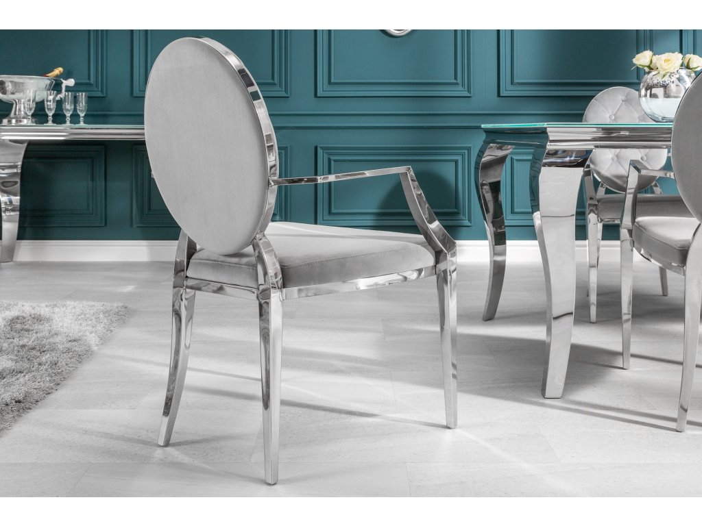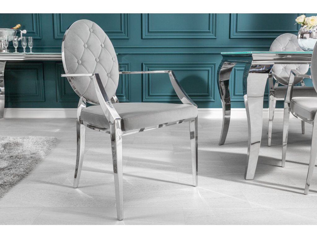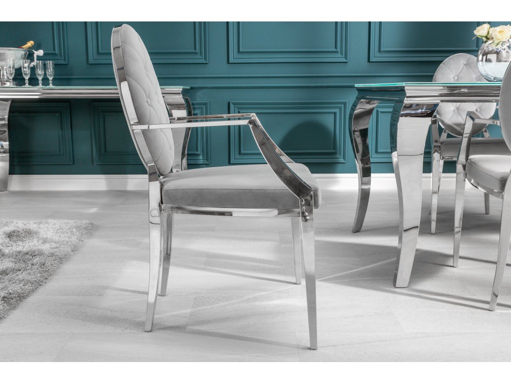 Židle MODERN BAROCK s područkami sametově ušlechtilá šedá v barokním stylu