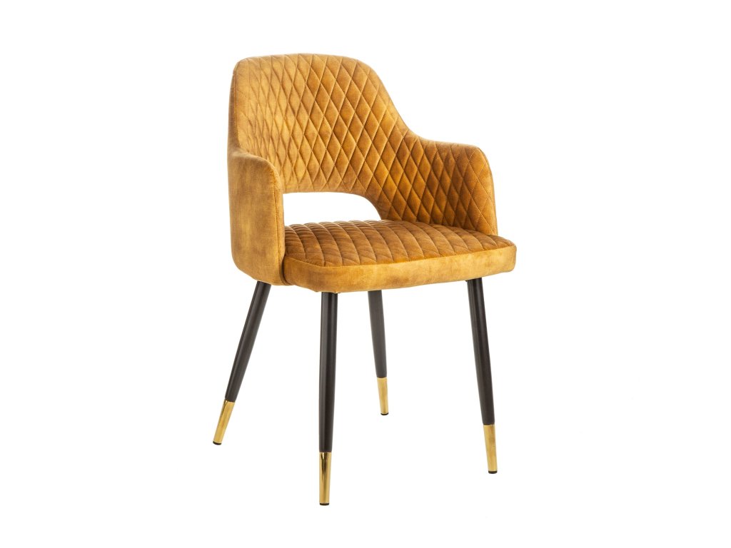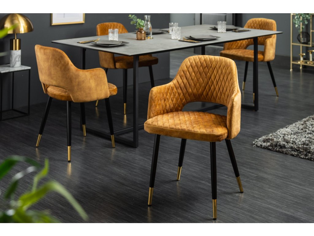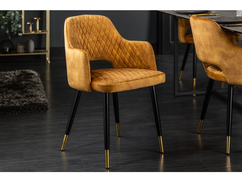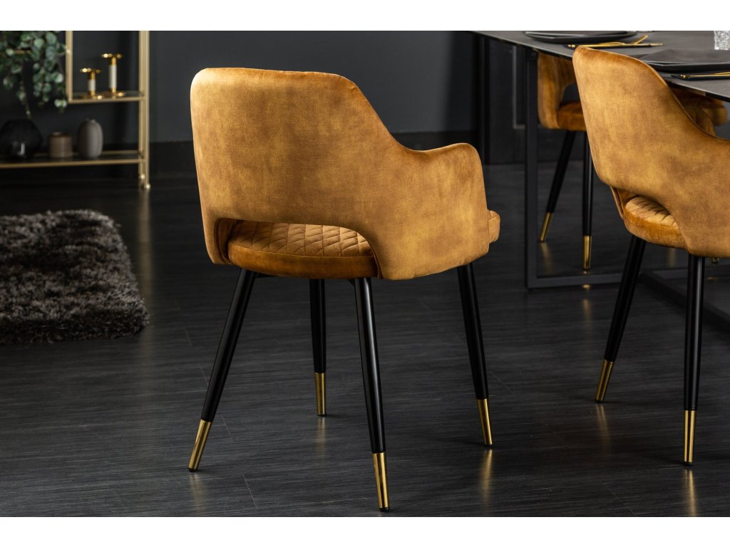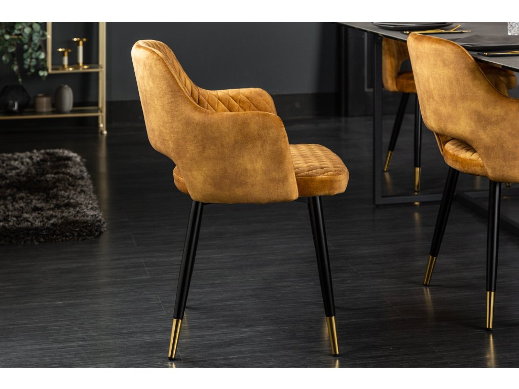 Židle PARIS se sametovými područkami s dekorativním prošíváním hořčicově žluté barvy