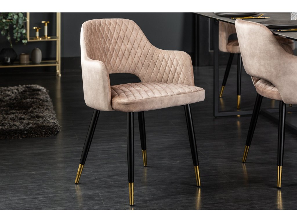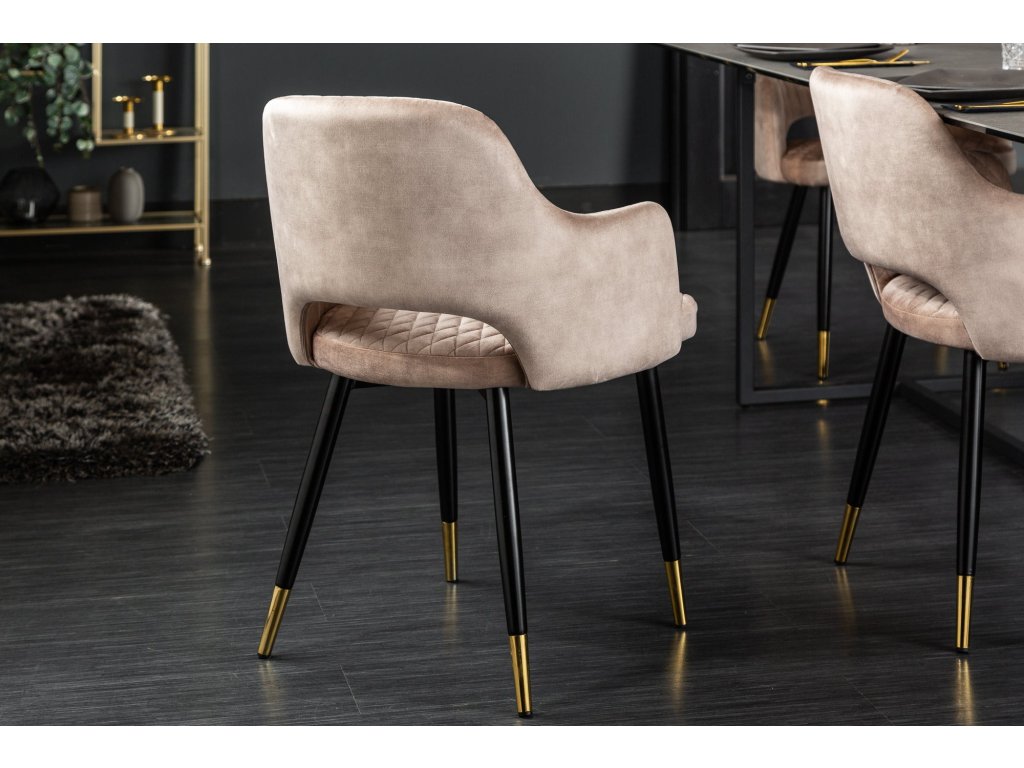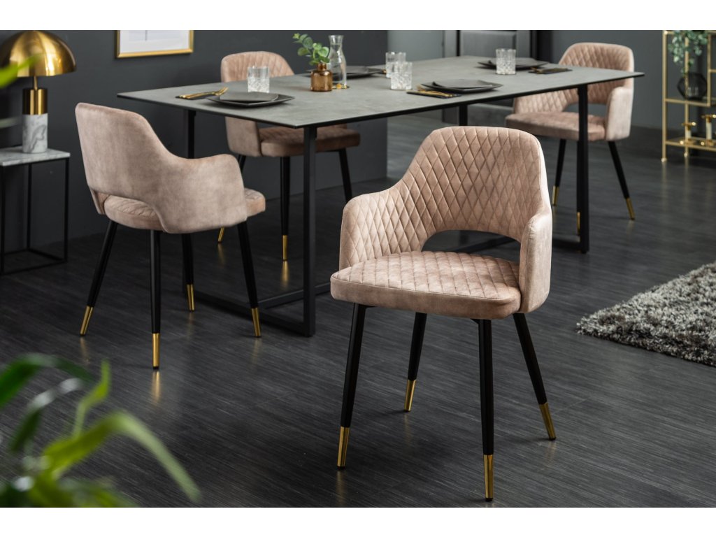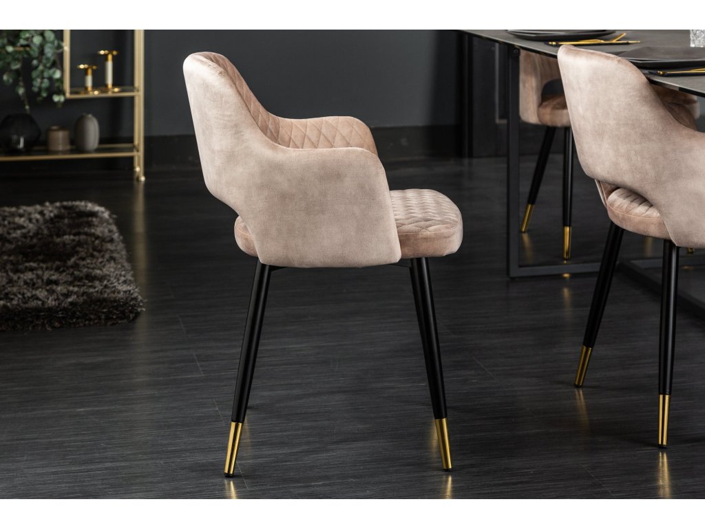 Židle PARIS se sametovými područkami s ozdobným prošíváním světle šedé