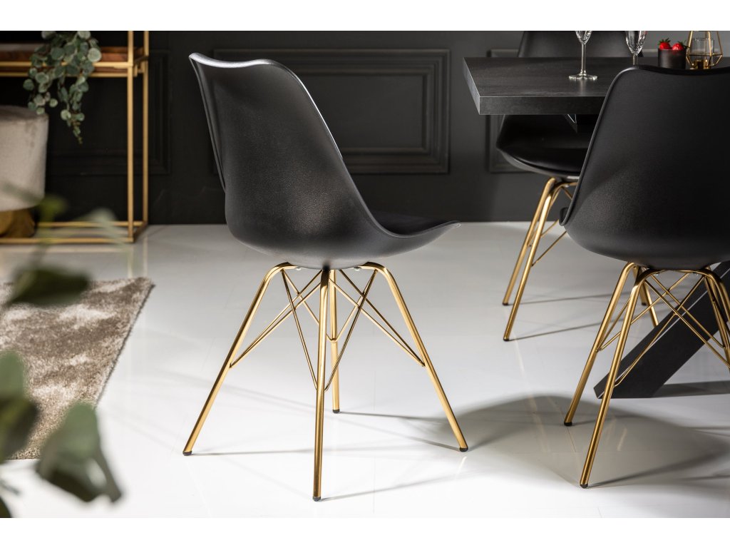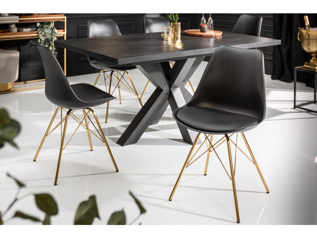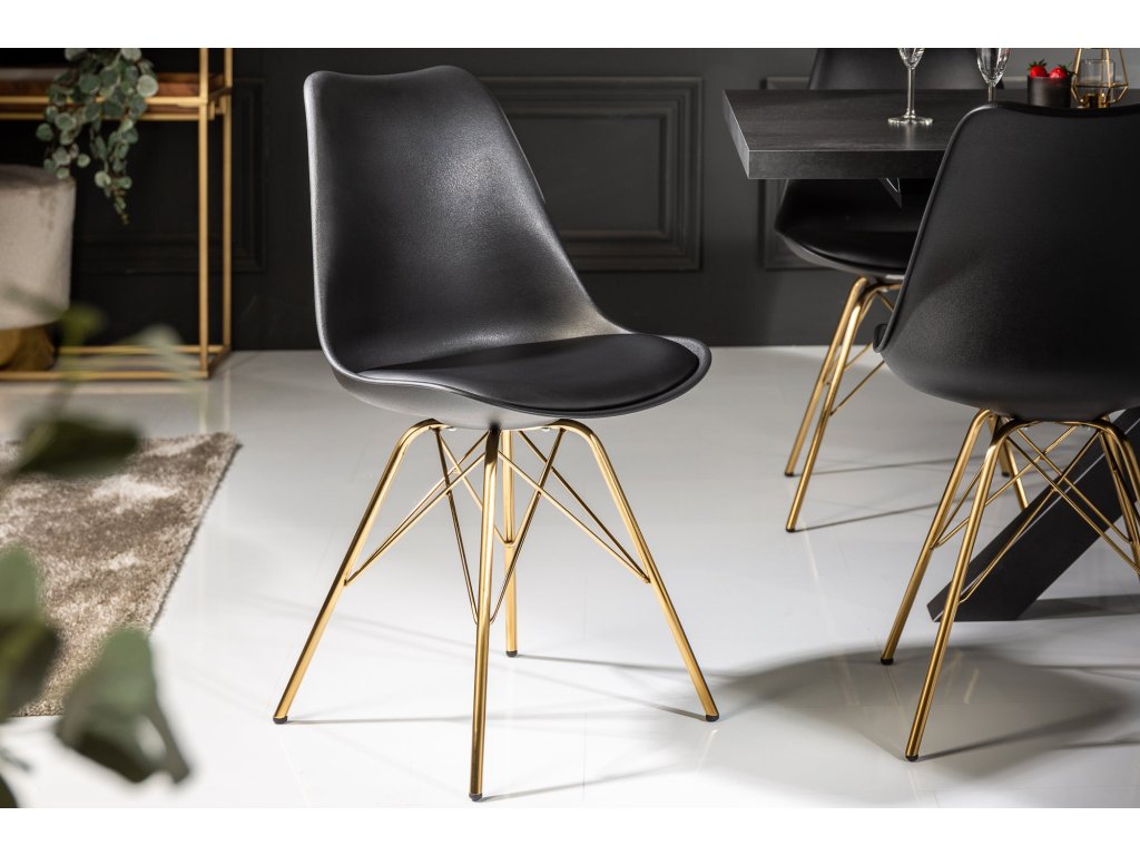 Židle SCANDINAVIA MASTERPIECE z umělé kůže černé zlaté nohy