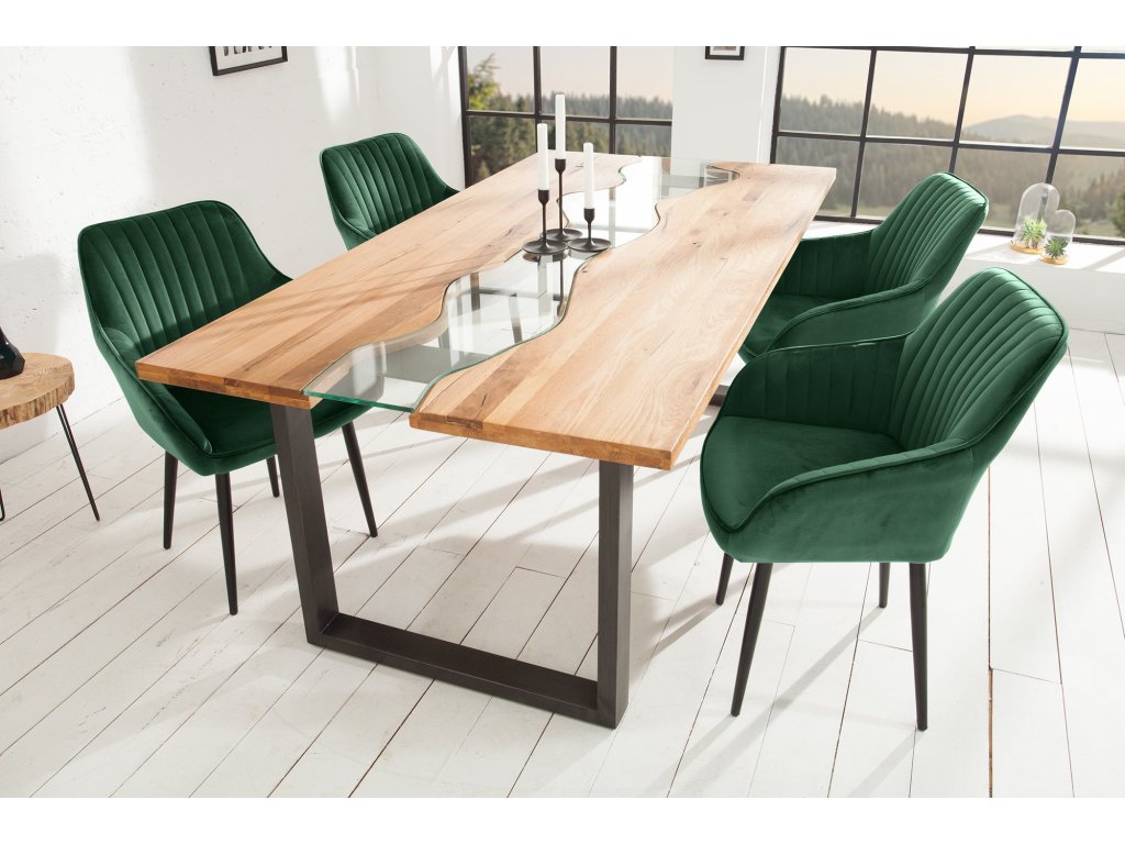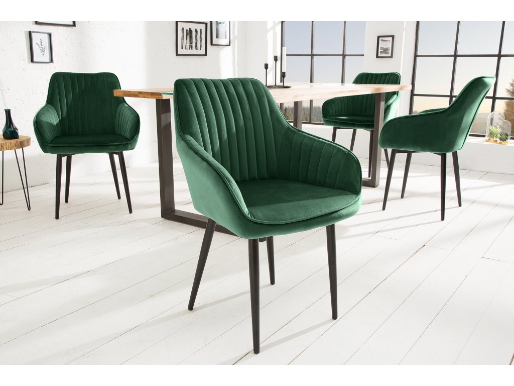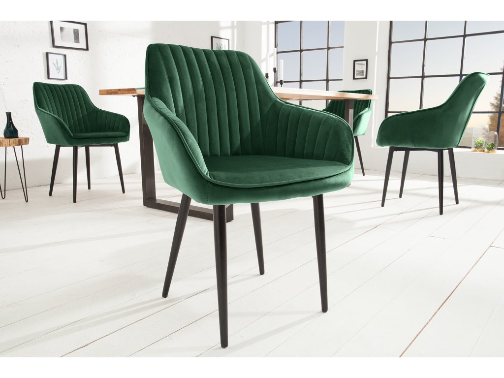 Židle TURIN s područkami sametově smaragdově zelená