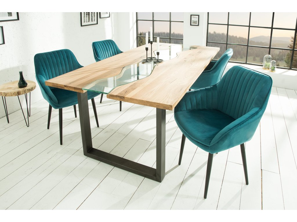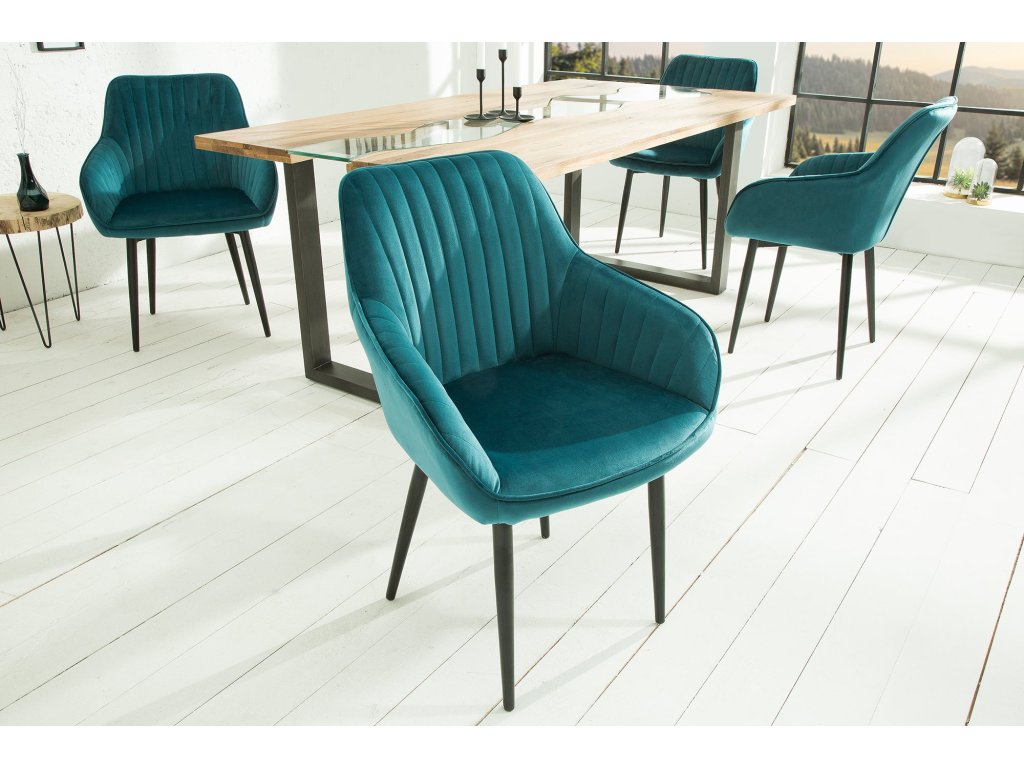 Židle TURIN s područkami sametově tyrkysová