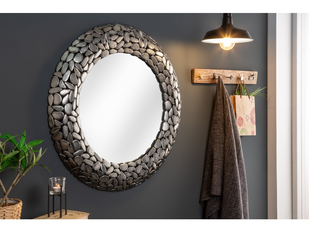 Zrcadlo STONE MOSAIC XL Ø 82cm stříbrné